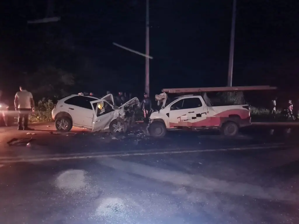 De acordo com a PRF, os veículos trafegavam em sentidos opostos, quando o automóvel entrou para a contramão e bateu de frente com uma picape. Os dois ocupantes do carro morreram no local. Os dois ocupantes da Strada tiveram ferimentos graves e foram socorridos.