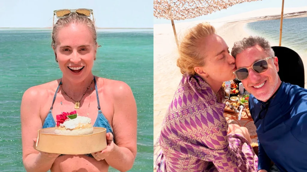 Angélica celebrou seus 52 anos em grande estilo durante uma viagem aos Lençóis Maranhenses, no Maranhão. A apresentadora publicou fotos em que aparece de topless em meio às dunas e lagoas cristalinas de Atins, destino que descreveu como “mágico” e cheio de energia positiva.