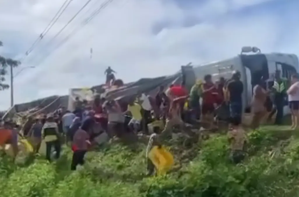 Caminhão de cerveja tomba em Peritoró e carga é saqueada pela população