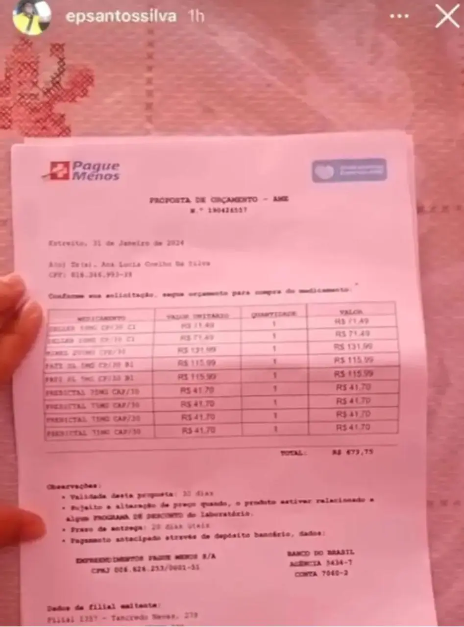 Em um vídeo, divulgado em sua rede social, ele afirma que diversos medicamentos estão em falta no município de Estreito. Ele também relata a situação humilhante, que sua esposa tem enfrentado, indo em diversos órgãos do município, e não resolvendo sua situação.