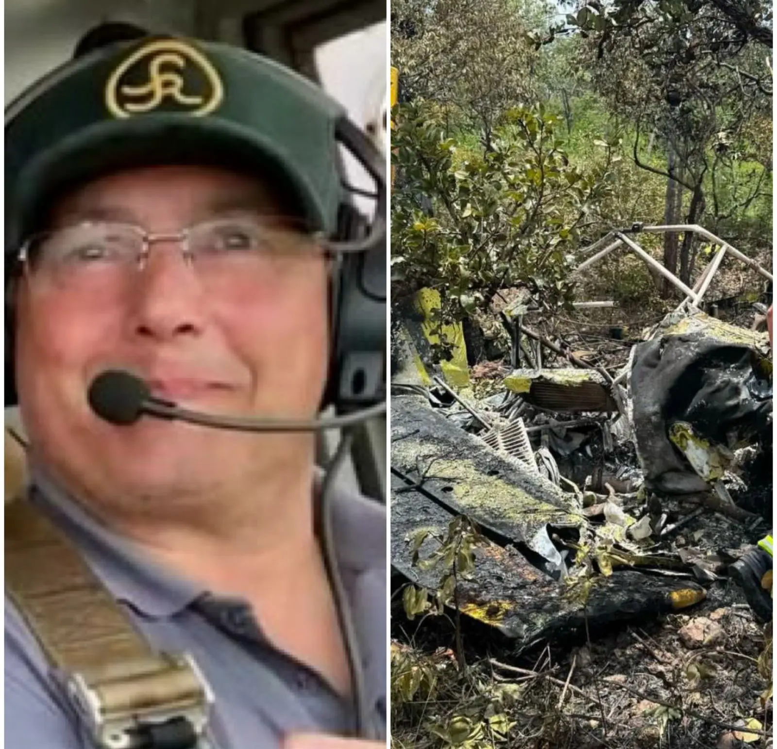 No momento da queda, o avião pegou fogo e o corpo do piloto foi carbonizado.
