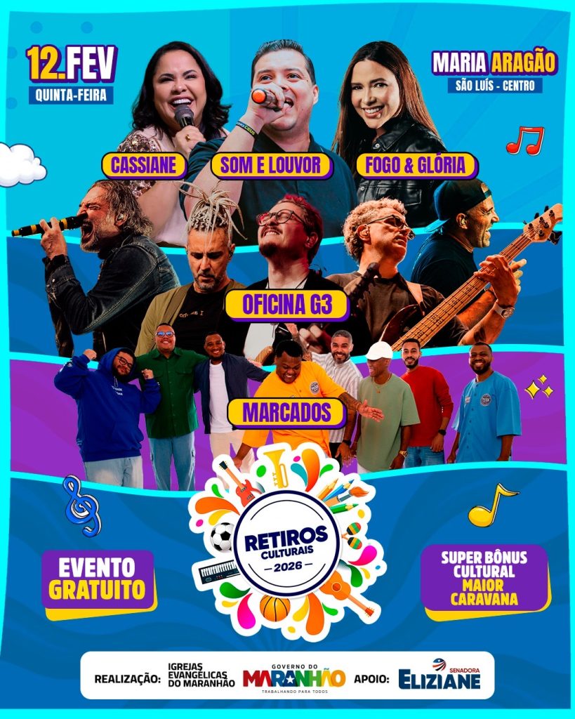 São Luís vai viver uma noite de fé, música e muita emoção na próxima quinta-feira, 12 de fevereiro, com a realização dos Retiros Culturais, evento que celebra os 18 anos da Lei nº 8.904/2008, de autoria da senadora Eliziane Gama, responsável por instituir e fortalecer a política pública dos retiros espirituais no Maranhão.