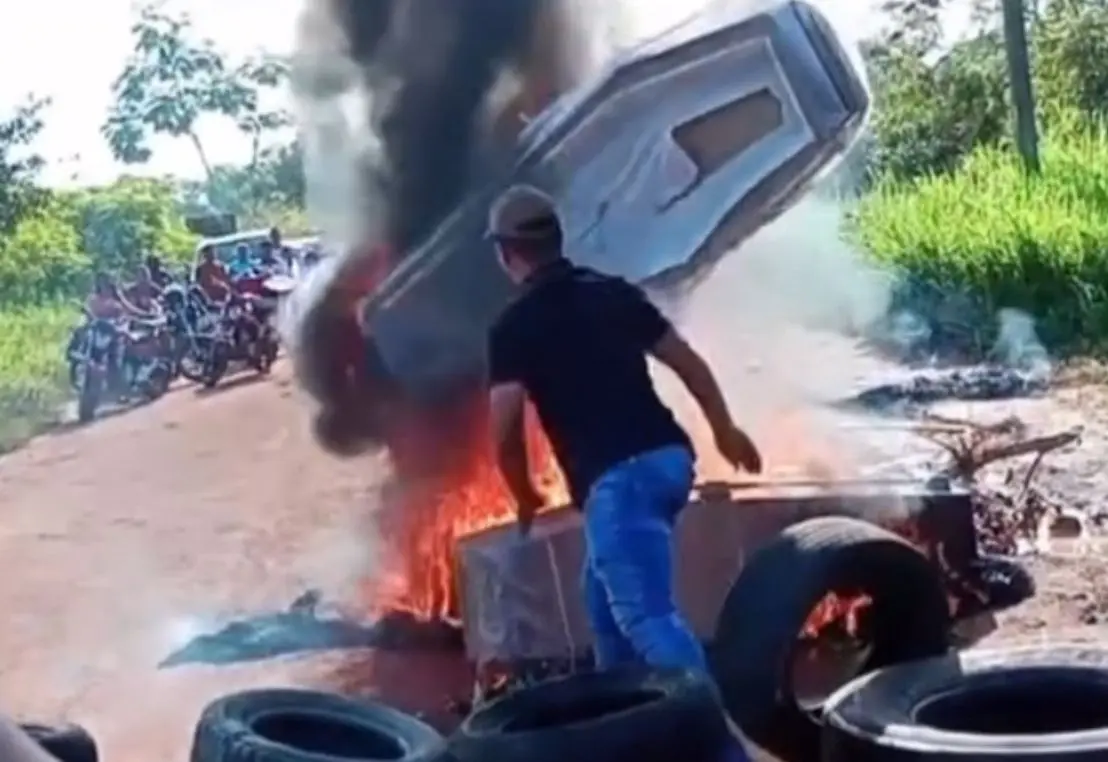 Foi usado pneus e até mesmo caixões, para bloquear a rodovia.