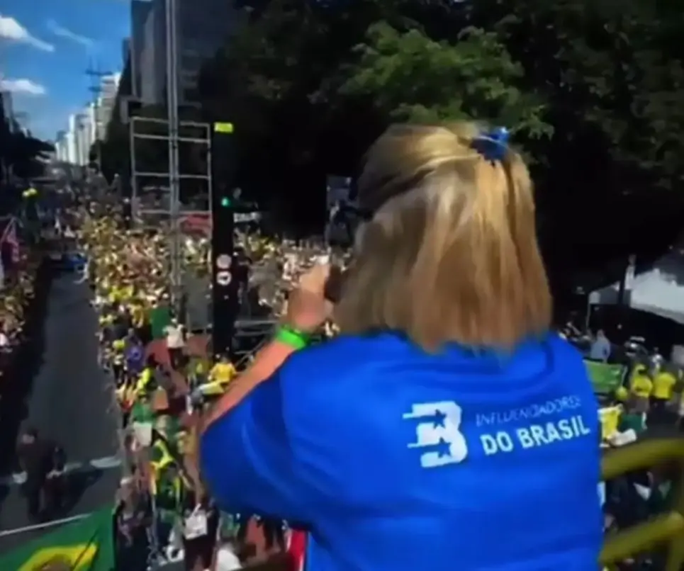 Vereadora Flávia Berthier faz discurso na Avenida Paulista durante ato bolsonarista