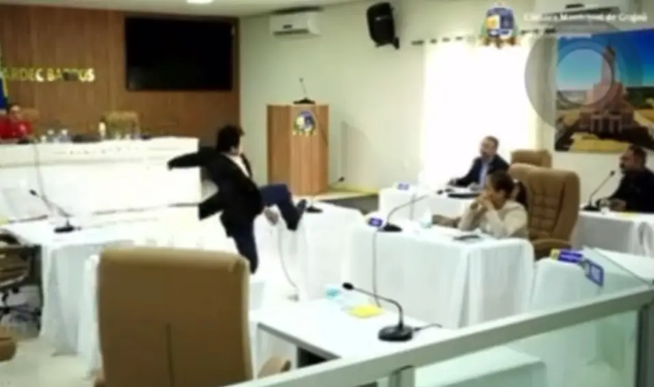 VÍDEO: Confusão na Câmara de Grajaú, vereador joga microfone no chão, chuta mesa e parte pra cima de colega
