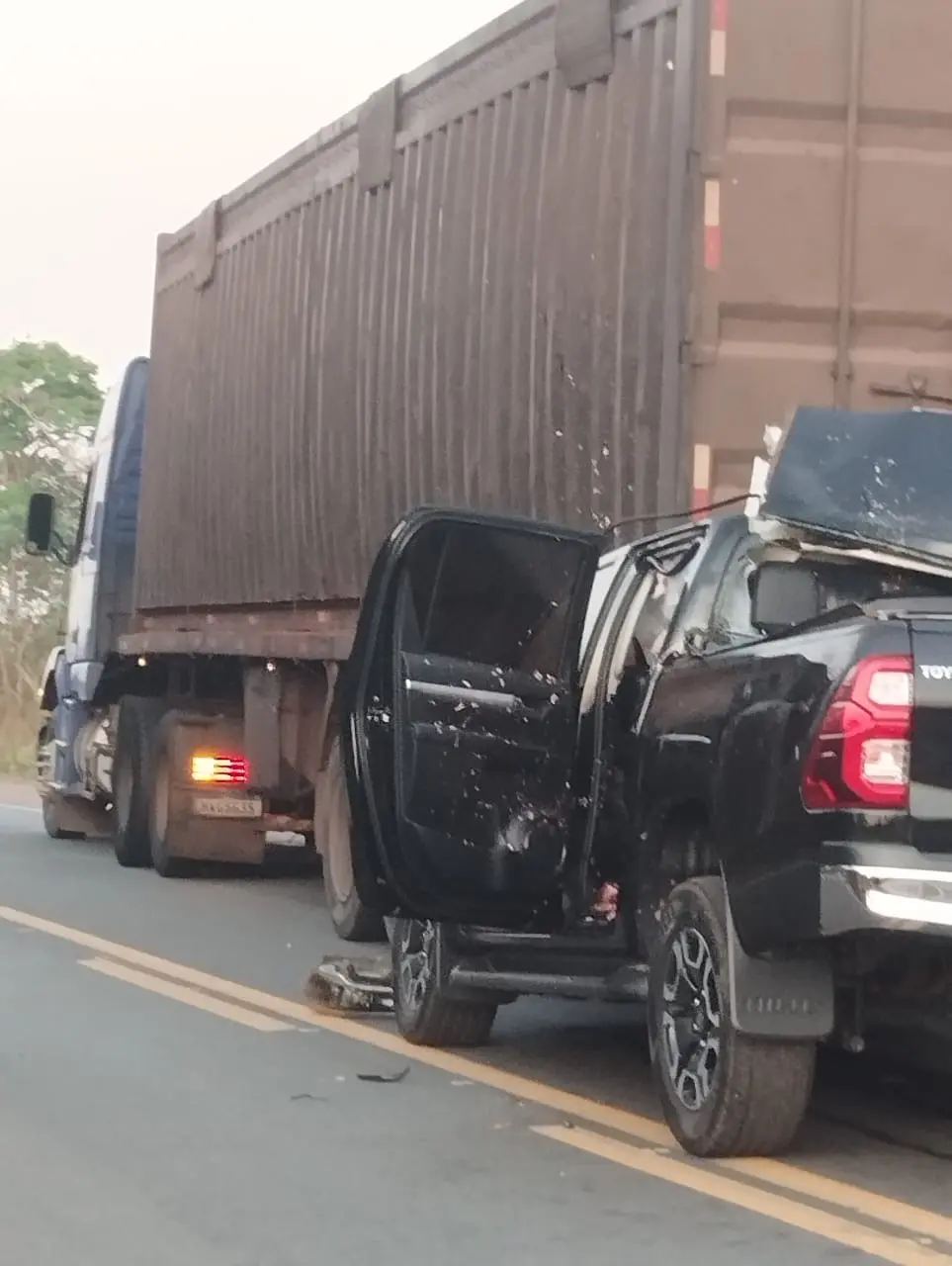 De acordo com informações preliminares, a caminhonete seguia pela rodovia quando colidiu violentamente na traseira do caminhão. O impacto foi tão forte que o veículo ficou completamente destruído.