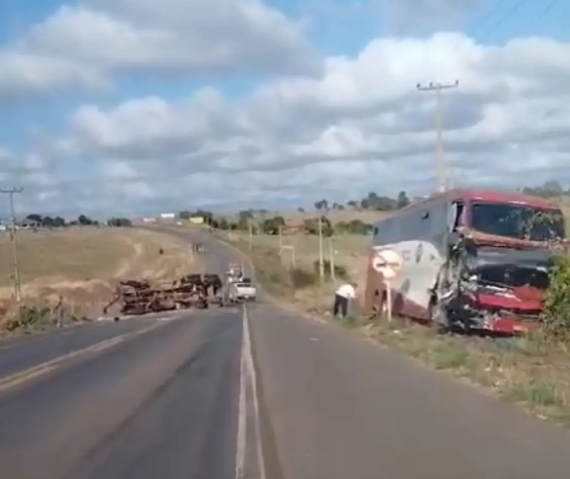 Na manhã desta quinta-feira foi registrado uma colisão entre um ônibus e um caminhão caçamba na BR-222 próximo ao povoado Sagrima em Buriticupu no interior do Maranhão.